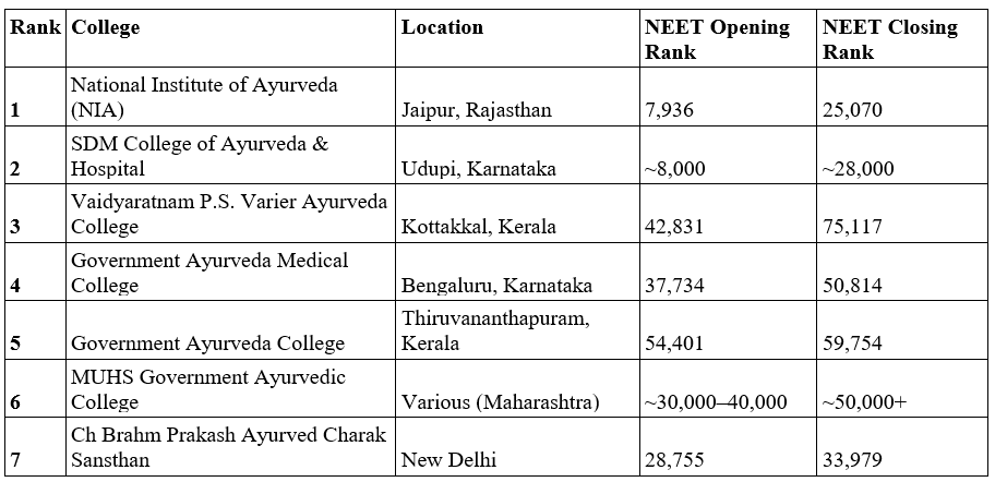 Key Point: AYUSH cutoffs are significantly lower than MBBS cutoffs; even scoring ~140–160 marks qualifies for many BAMS/BHMS seats.